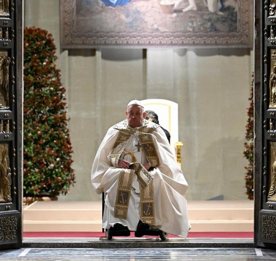 지난해 4월 선종한 프란치스코 교황이 2024년 12월 24일 베드로 대성전 성문으로 들어서며 희년의 시작을 알리고 있다. 바티칸뉴스 제공