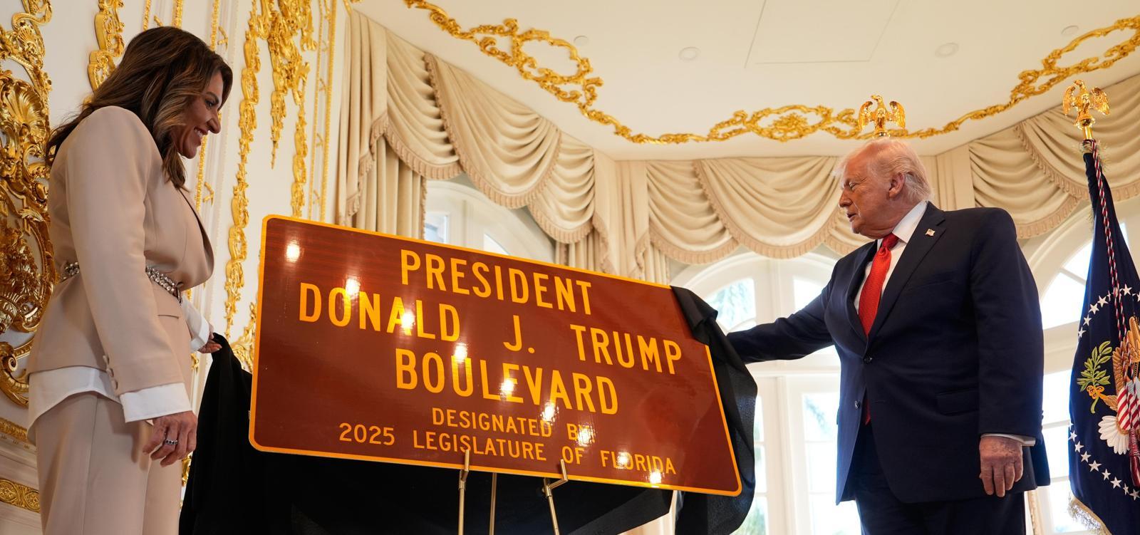트럼프 대통령은 16일(현지 시간) 마러라고 리조트에서 열린 도로 개명식에 참석했다. 그는“밤에 아름답게 불을 밝힌 ‘트럼프 불러바드’라는 표지판을 보면 자부심으로 가득 찰 것”이라며 “우리나라는 더 강해지고 부유하고 성공적이 될 것”이라고 주장했다. 자신이 언급하는 자부심은 대통령 개인에 대한 것이 아니라 미국과 플로리다주에 대한 자부심이라고 설명했다.