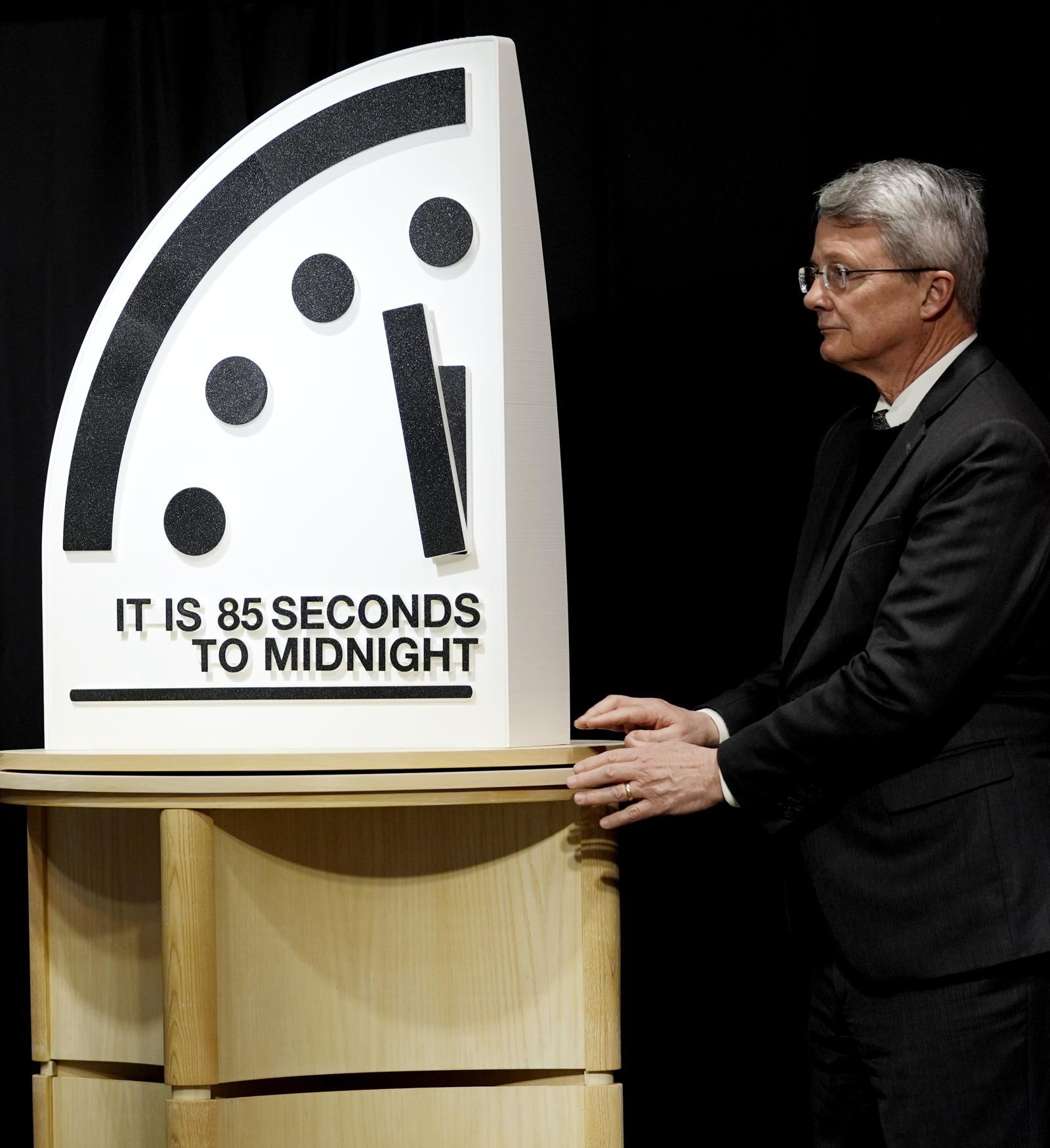 이 시계를 운영하는 미국 핵과학자회(BAS)는 24일(현지 시간) 성명을 통해 종말까지 “85초가 남았다”며 “러시아, 중국, 미국 등 주요국이 점점 더 공격적이고 적대적이며 민족주의적인 태도를 보이고 있다”고 밝혔다. 이어 “승자 독식의 강대국 경쟁을 가속화하는 가운데 핵전쟁, 기후 변화, 생명공학의 오용, AI의 잠재적 위협, 기타 종말론적 위험을 줄이는 데 필수적인 국제협력이 무너지고 있다”고 지적했다.