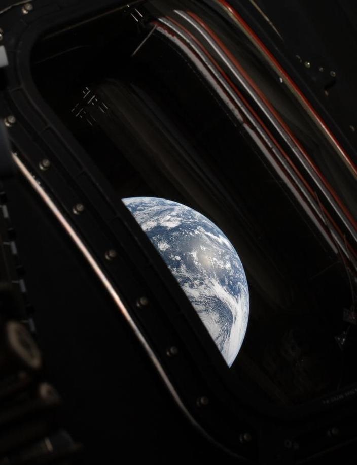 우주선 창문을 통해 촬영한 지구의 모습. 사진 출처 미국항공우주국(NASA)