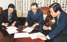 TV로 생중계하기로 합의하고 합의문에 서명했다. <김동철기자>