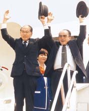 黃長燁(황장엽) 전북한 노동당비서와 황비서의 심복인 金德弘(김덕홍)전 여광무역 총사장이 20일 오전11시40분경 「에어 필리핀」특별전세기편으로 성남 서울공항에 도착, 귀순했다.