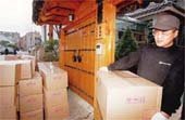 25일 대통령에 취임하는 김대중차기대통령의 일산 자택에서 21일 이삿짐센터 직원이 청와대로 보낼 이삿짐을 나르고 있다.