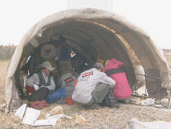 잠자리 역시 편할 리 없다. 마을회관 정도면 호텔급이고 대개는 야영텐트 속에서 밤을 보낸다. 아직은 쌀쌀한 밤기운을 옆사람의 체온으로 달래고 해가 뜨면 또다시 계속되는 행군. 때론 초코파이로 끼니를 때우면서 무거운 발걸음을 재촉한 이들은 무엇을 보고 느꼈을까.