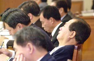 1일 대한주택공사에 대한 국회 건교위의 국감 도중 한 의원이 피곤한 듯 눈을 감고 잠시 휴식을 취하고 있다.