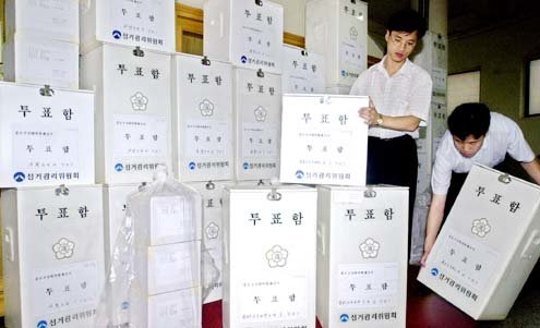 8.8 국회의원 재·보궐선거를 하루 앞둔 7일 종로구선관위 직원들이 투표함과 투표용지를 각 투표소로 이송하고 있다. 신석교기자 tjrry@donga.com