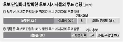 ▼鄭으로 단일화 盧지지자 58% 鄭선택