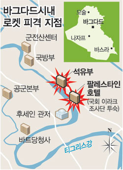 터키 이스탄불의 영국영사관 및 영국계 은행에 폭탄테러 참사가 발생한 지 하루 만인 이날 오전 7시20분경 팔레스타인호텔과 인근 셰러턴호텔, 이라크 석유부 청사가 모두 10발 이상의 로켓포 공격을 받아 최소한 3명이 다쳤다고 외신들이 전했다.