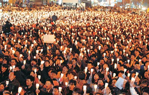 ▽광화문 인파 운집=12일 서울 여의도에 1만2000여명이 모인데 이어 서울 광화문에서 13일 밤에 7만여명, 14일 밤에 4만5000여명이 모여 촛불시위를 벌였다.