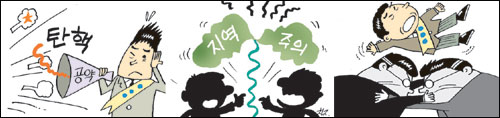▽지역주의 약화=열린우리당이 영남과 호남, 충청지역 여론조사에서 정당지지율 1위를 차지할 정도로 지역주의마저 무뎌지고 있다. 광주에 출마한 민주당 후보와, 부산에 출마한 한나라당 후보들은 “인물은 좋은데 당이 나쁘다”는 충격적인 얘기를 듣고 있다.