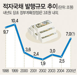한편 이헌재(李憲宰) 부총리 겸 재정경제부 장관은 이날 재경부 간부회의에서 “적자재정이 국민경제에 부정적인 영향을 미친다고 하는데 부작용이 어느 정도인지, 우리 경제가 감당할 수 있는 수준인지 등을 점검해 보라”고 지시해 경기부양을 위한 재정지출 확대 가능성을 시사했다.