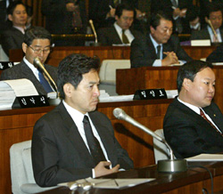 ![]() 30일 국회에서 열린 한나라당 의원총회에서 의원들이 쟁점 법안의 처리에 관한 여야의 막판 협상 결과를 심각한 표정으로 듣고 있다. 이에 앞서 한나라당 김덕룡 원내대표는 국가보안법 문제도 타결될 수 있음을 기자들에게 시사했다.-서영수 기자 |