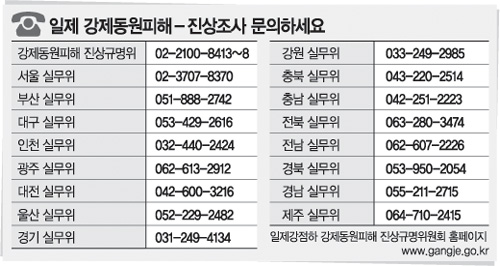 위원회는 피해자 신고를 접수하는 대로 진상 조사에 들어가 강제동원에 의한 피해인지를 확인한 뒤 이 사실을 피해자나 유족에게 통보해 줄 방침이다.