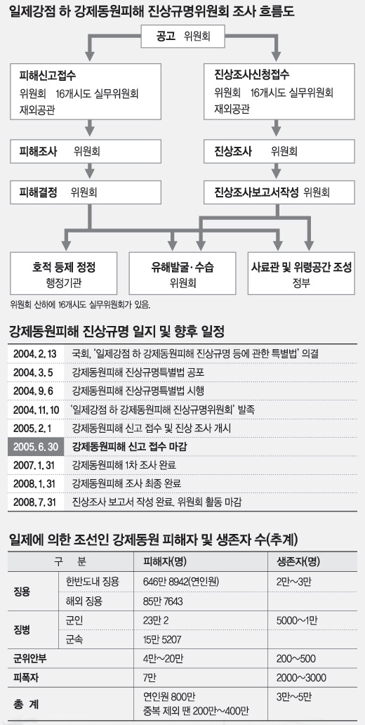 일제에 의한 강제동원 피해자 규모는 연인원 800만 명에 이르는 것으로 알려지고 있지만 광복 이후 60년이 지나도록 단 한 번도 전체적인 조사가 이뤄지지 않았다.