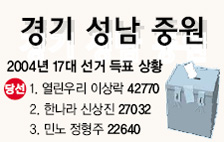 그러나 열린우리당과 민주당이 분당된 후 전통적인 투표 행태에 변화의 조짐이 느껴지고 있다. 한마디로 ‘우리도 같은 성남인데 분당 사람들처럼 잘사는 게 중요하다. 누가 더 먹고사는 데 도움이 되는지 보겠다’는 것.