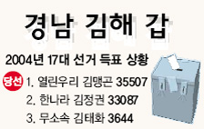 노무현 대통령의 고향(김해시 진영읍)이 속한 선거구(김해을)는 아니지만 넓게 보면 영향권에 있는 지역이다. 열린우리당은 지난해 17대 총선 당시 한나라당 강세였던 경남에서 김해갑, 을 두 곳만은 건졌다.