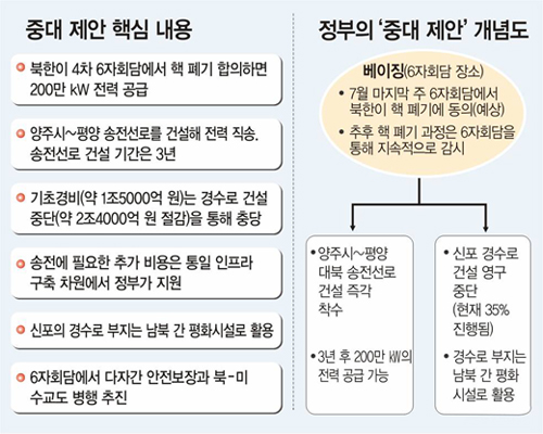 뭔가 관련국들과 협의가 덜 끝난 ‘플러스 α’가 남아 있거나, 관련국들의 즉각적인 동의를 얻지 못한 부분이 빠졌을 수 있다는 심증이 가는 대목이다. 전력 이외의 에너지 지원, 시베리아횡단철도(TSR) 연결, 이를 위한 국제적 자금 동원 등이 그것이다.