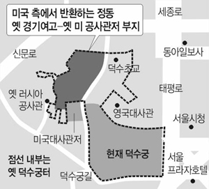정동 부지 반환에 따라 수년 동안 계속돼 온 문화재 훼손 논란도 종지부를 찍게 됐다. 미 측은 옛 경기여고 자리와 그 주변에 2008년까지 지하 2층, 지상 15층의 대사관과 8층짜리 직원용 아파트, 4층짜리 군인용 숙소를 지을 계획이었다. 이곳은 1986년 ‘한미 재산교환 양해각서’ 체결을 통해 미대사관이 소유하게 된 땅이다.