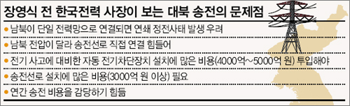 “북한 측 전기사고가 남한에까지 영향을 주지 못하도록 접경지역에 자동차단기를 설치하는 비용만 4000억∼5000억 원이 필요하다. 송전선로비와 변전소 설치비를 합치면 1조 원이 훨씬 넘을 것이다.”