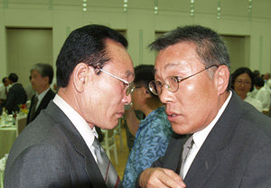 이번 대회 기간 중 남한의 황석영(62) 씨와 북한의 홍석중(64) 씨가 만나 남북 문학 교류 등에 대해 얘기를 나눴다. 1989년 황 씨가 방북했을 때 처음 만난 두 사람은 2001년 평양 8·15 범민족대회에 이어 21일 평양 고려호텔에서 다시 만났다. 두 살 차이인 두 사람은 서로 말을 놓았으며 앞으로 함께 작품을 써서 한 권의 책을 펴내기로 약속했다. 다음은 두 사람의 대화 내용.
