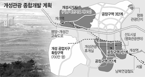 이에 따르면 △1단계로 호텔과 관광정보센터, 박물관 등을 갖춘 ‘평화관광센터’를 건설하고 △2단계로 도로와 상하수도 시설 등 기존시설을 개보수하며 △3단계로 테마파크를 건설해 평양이나 백두산과의 연계관광도 추진한다는 것이다.