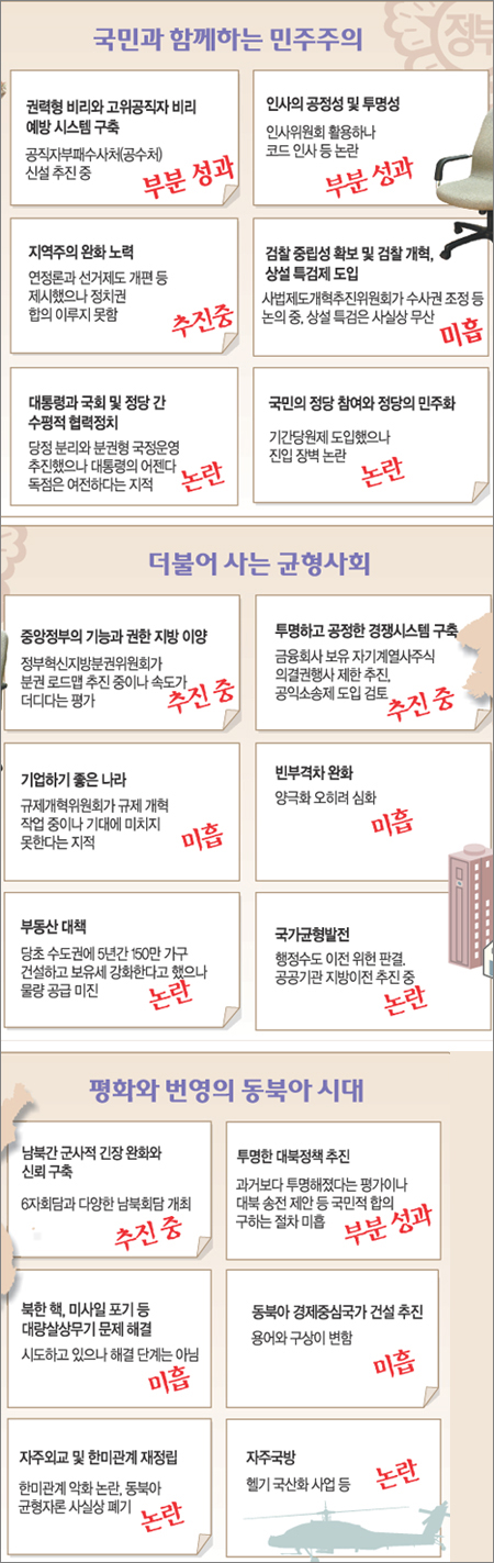 ‘국민과 함께하는 민주주의’라는 국정 목표에서의 키워드는 ‘반부패’와 ‘참여와 통합’이었다.