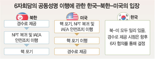 ▽어정쩡한 공동성명이 논란의 진원=북한의 주장은 공동성명에 경수로 제공과 핵 포기 중 어느 것이 먼저인지에 대한 명확한 규정이 없는 데서 비롯됐다.