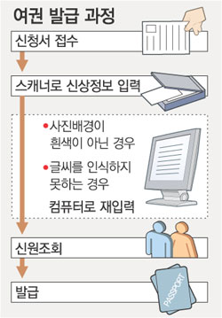 ▽새 시스템이 문제=외교통상부는 여권 위조 및 변조를 막기 위해 신청서를 스캔하는 방식으로 민원인의 이름과 주소를 입력하는 시스템을 9월 30일부터 운영하고 있다.
