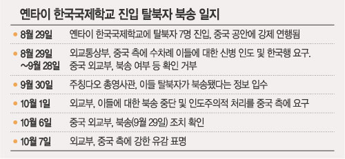 정부로선 고민이 클 수밖에 없다. 그동안 중국이 국제학교에 진입한 탈북자들의 한국행에 협조한 것은 법적인 구속력이 있어서가 아니라 국내외의 인도주의적 압력에 의한 것이었기 때문이다. 정부가 이번 탈북자 강제 북송을 국제법 위반으로 몰아붙이기 곤란한 것도 그 때문이다.