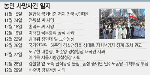허 청장과 두 차례 통화한 한 중진 의원은 “허 청장이 처음에는 ‘농민들이 쇠파이프까지 휘두르니까 정당방위를 하다가 그렇게 된 것 아니냐. 시위문화를 정착시키지 못하고 나만 물러날 수 없다’고 하다가 나중에는 ‘대통령에 부담을 주는 것 같아 고민이다’고 했다”고 전했다.