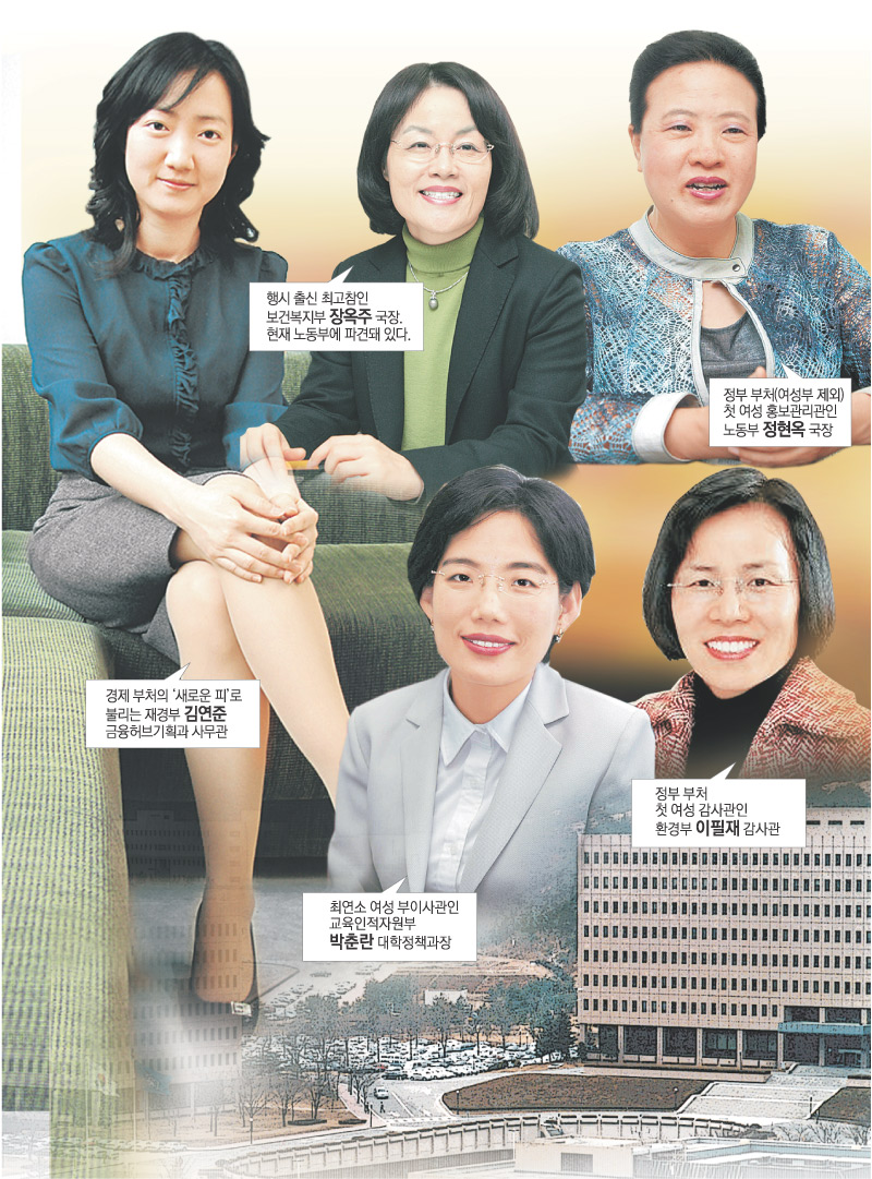 선두 주자는 행시 25회인 장옥주(張玉珠·47) 국장. 연금, 노인복지, 아동정책 등을 담당하다가 현재 노동부에 파견돼 노동보험심의관으로 일하고 있다. 장 국장은 “행시 합격 당시만 해도 정부 부처에서 유일한 여성이었다”며 “이후 거의 매년 여성 후배가 들어와 복지부에만 26명이나 돼 뿌듯하다”고 말했다.
