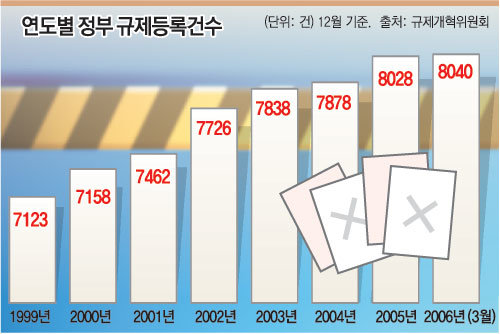 이는 한국규제학회 주관으로 30일 대한상공회의소에서 열리는 ‘참여정부 규제개혁 중간평가 세미나’ 자료에 근거한 것이다. 이 세미나는 한국행정연구원과 한국경제연구원이 공동 주최하며 규제개혁위원회, 대한상의가 후원한다.