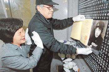 반원형 대리석 벽에 깨알같이 새겨진 1만여 명의 이름. 영희 씨는 자꾸만 시야를 가리는 눈물 때문인지 아버지의 이름 근처에서 한참을 서성거렸다. 떨리는 손으로 이름 하나하나를 직접 만지던 그는 ‘중위 이헌우’란 이름을 발견하곤 나지막하게 신음하며 주저앉았다.