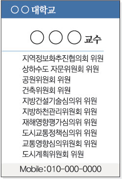 5·31지방선거에 광역의원으로 출마할 이 인사의 명함에는 5개 위원회 이름이 새겨져 있다. 그는 “선거에 출마하려면 이 정도는 필수”라고 말했다.