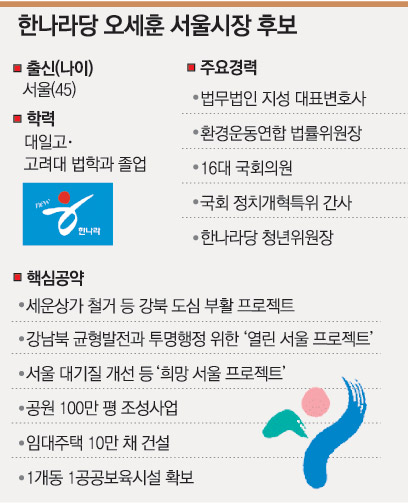 오 후보는 이들 ‘비토세력’까지 껴안고 본선에서 총력체제를 구축해야 하는 숙제를 안고 있다. 그는 “서울시장 선거 승리가 대선과 직결된다. 못 이기면 한나라당에 미래가 없다”는 점을 강조하며 이들을 적극 껴안는다는 구상이라고 한 핵심 관계자가 전했다.