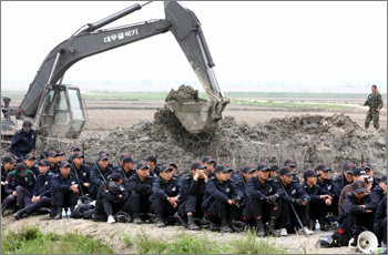 한편 기지 확장 예정지 주민 30여명은 대추리 '문무인상' 인근에 있는 군 철조망 바깥 논에 모여 이달 4일 철조망 설치 이후 중단했던 농사일을 다시 시작했다.