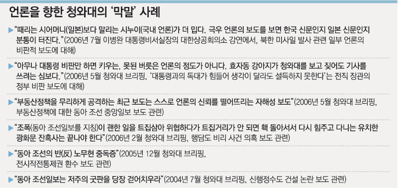 청와대가 이번에 동아일보 칼럼과 조선일보 분석기사를 비난하며 집중 문제 삼은 것은 ‘표현 방식’이었다. 동아일보 칼럼의 ‘약탈정부’ ‘도둑정치’라는 표현과 조선일보의 ‘계륵 대통령’이란 표현이 문제라는 얘기였다.