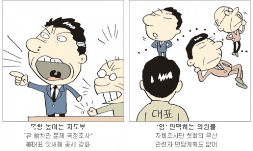 당 차원의 대책도 부실하기는 마찬가지다. 유 차관 경질 파문과 관련한 언론 보도 외에 추가적인 자료 발굴 노력은 물론 진상조사단에 대한 당의 인력 지원도 전무한 실정이다. 관련 자료와 실무인력, 조사단 회의 등도 없는 상태에서 대(對)정부 성토만 앞세우고 있는 셈.
