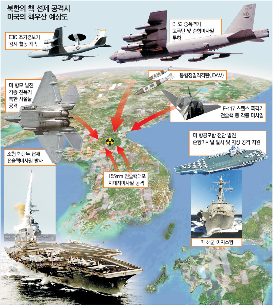 북한으로선 핵우산의 보호를 받는 한국을 핵무기로 선제공격했다가 몇 십, 몇 백배의 위력을 가진 미 전략핵무기의 무차별 보복을 받아 초토화될 수 있다는 위기감을 느낄 수밖에 없는 것이다.