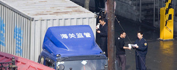 세관 심사 받는 북한행 화물 중국 세관원들이 16일 단둥에서 북한으로 들어가는 트럭의 서류를 살펴보고 있다. 단둥=AP 연합뉴스