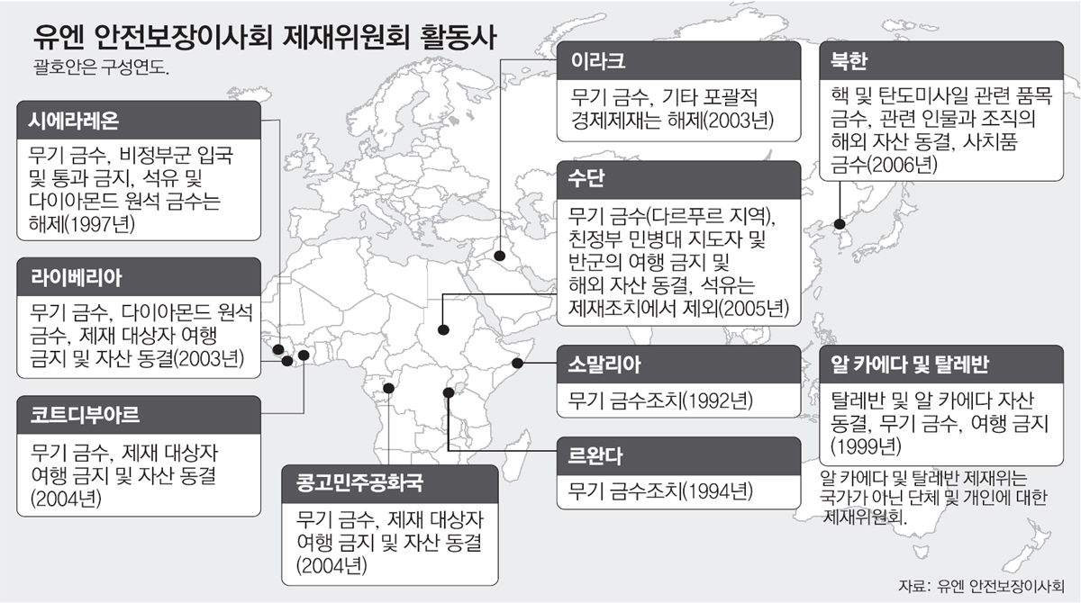 또 북한에 대한 이번 제재는 지금까지 안보리 제재 역사상 가장 포괄적이라는 평가를 받고 있다. 지금까지 안보리 제재는 주로 내전에 시달리는 아프리카 국가들을 대상으로 한 무기금수가 대부분이었다. 반면 이번 대북 제재는 핵, 미사일 기술은 물론이고 사치품 제재에 이르기까지 안보리가 채택할 수 있는 제재가 망라돼 있다.