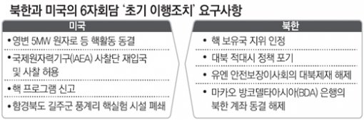 미국의 제안에 유보적인 자세를 유지하며 6자회담에서 북한에 요구할 핵 폐기를 위한 ‘초기 조치’의 수준을 낮추려는 시도라는 것.