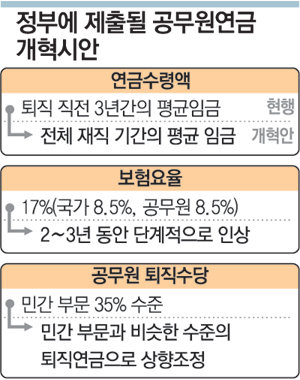 현재 국가와 공무원이 8.5%씩 부담하는 17%의 보험료율도 2, 3년마다 단계적으로 높여 나가기로 했다.