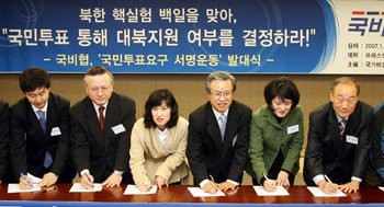 국비협은 이날 서울 중구 태평로 한국프레스센터에서 가진 서명운동 발대식에서 “노무현 정부의 대북 지원 중단을 강력히 촉구하기 위해 청년조직과 보수단체 신앙단체를 중심으로 서명운동을 전개하겠다”고 선언했다. 국비협은 온라인을 통해 단기간에 수백만 명의 서명을 받아 대북 지원 여부를 결정할 국민투표를 끌어낼 방침이다.