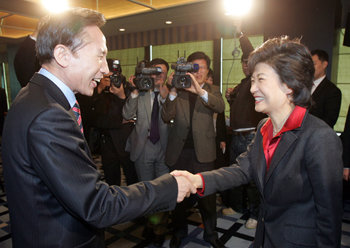 손 전 지사는 또 “토목공사 프로젝트가 국가 발전전략이 될 수는 없다. 한두 가지 프로젝트가 대한민국 미래의 발전 비전이 될 수는 없다”며 박 전 대표의 ‘열차 페리’ 구상이나 이 전 시장의 ‘한반도 대운하’ 공약을 겨냥했다.