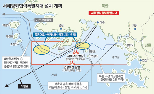 5《남북 경제협력 사업을 확대 발전시키고 ‘서해 평화협력특별지대’를 설치하고 공동어로수역과 평화수역 설정 등을 적극 추진한다.》
