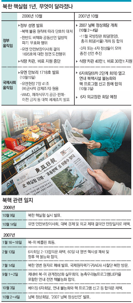 우선 동북아를 ‘핵 위협’의 충격에 빠트린 북한의 핵무기에 대해서는 진전이 없었다. 6자회담에서 현재까지 논의한 것은 ‘현재 핵’에 해당하는 영변 핵시설에 대한 불능화 방안 정도다.