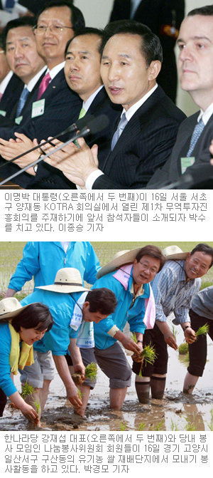 여당인 한나라당과도 추경예산, 친박(친박근혜) 인사 복당 등을 놓고 사사건건 엇박자다. 이재오 이방호 정종복 박형준 의원 등 이 대통령의 최측근들이 총선에서 낙선하면서 청와대와 당을 이어줄 ‘가교’가 끊어졌기 때문이다.