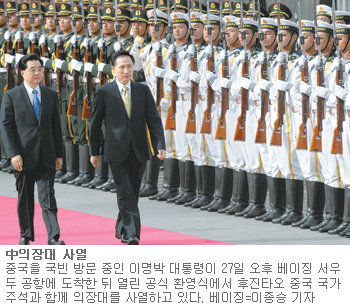 이명박 대통령이 중국 런민(人民)일보 27일자 인터뷰에서 “중국은 남북이 서로 평화를 유지하고, 북한이 핵을 포기하고, 남북이 통일되는 과정에서 큰 역할을 할 수 있을 것”이라며 중국의 역할을 강조한 것도 이명박 정부가 지향하는 ‘비핵, 개방, 3000’ 구상에서 중국의 협조가 필요하다는 점을 인식한 것으로 풀이된다.