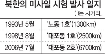 북한은 2006년 7월 5일 대규모 미사일 발사시위 때 무수단리 발사장에서 대포동 2호로 추정되는 장거리미사일을 발사했다. 이 미사일은 발사 42초 만에 동해상에 추락했다.